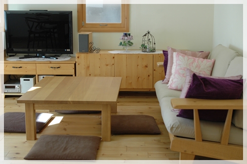 クッションに埋もれるように座るのが好きなんですよ~足を乗せてもいいし(笑)