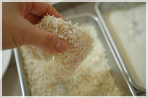 そして、小麦粉&マヨネーズ&水を溶いたものを付けて、パン粉を付けるだけ。