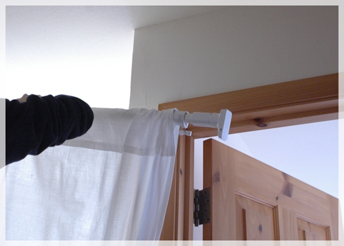 強力突っ張り棒を外して、下の棒も抜いて、カーテンは洗濯!