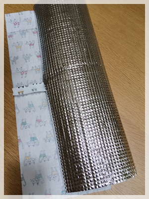保温保冷シートは、ダイソーでこんなアルミシートを買ってきました。(もちろん100円♪)