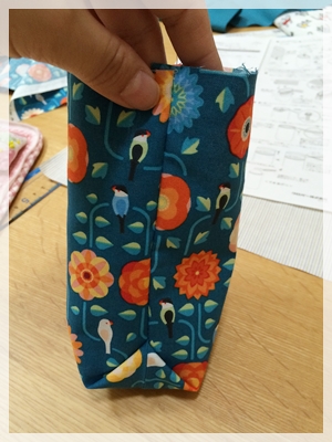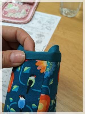口のところを縫うのが狭くて、ちょっとミシンが入りにくくて難しいのですが、ゆっくり縫えば大丈夫。