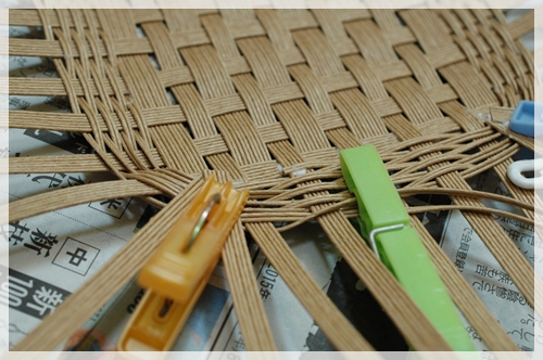 縦紐を編みこんでいって。