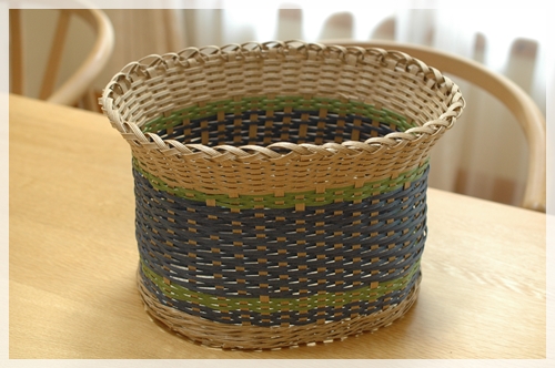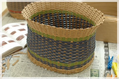 さて、一昨日、貯まっていた録画番組を見ながら(笑)、久しぶりにエコクラフトでカゴを作りました。
