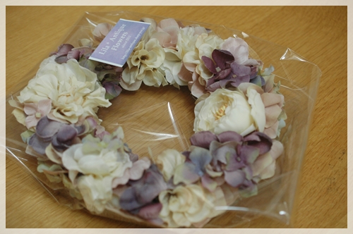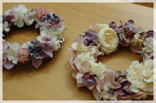 ちなみに今回のリースはこちらの作品です。→ 「アートフラワーのリース スモーキーピンク」