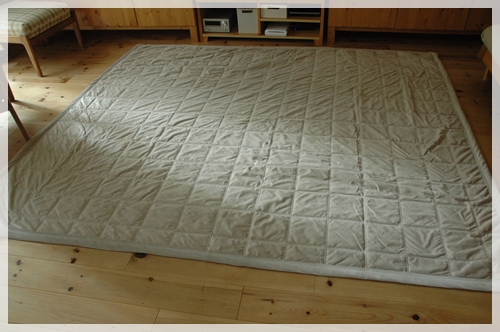そして、コタツを小屋裏から下ろしてきまして、まずはコタツ敷きを敷きます。