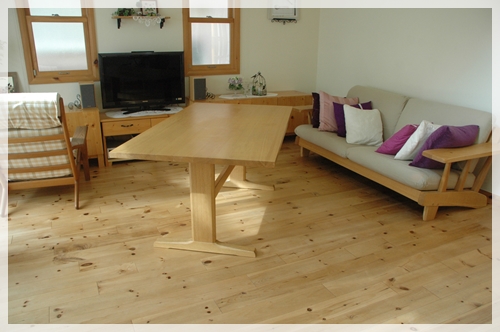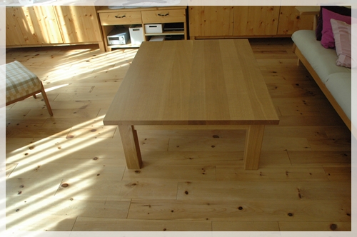 ちなみにこのリビングテーブルはダイニングテーブルと同じ柏木工の、ナラ無垢材のテーブル(90cm×120cm)です。