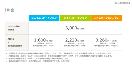こちらも、通話+3GBのミニマムスタートプランが月額1,600円
