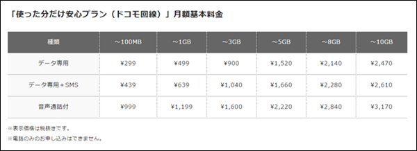 なんと安くてシンプルなプランなのでしょう!!大手キャリアよりも圧倒的に安い。