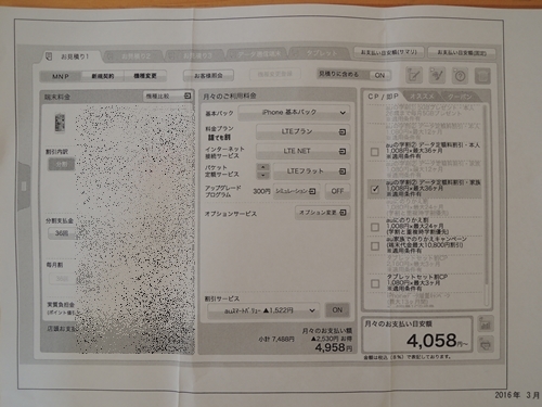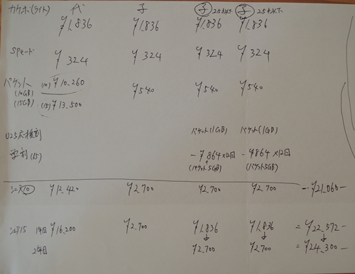 ↓手書きでいただいたdocomo見積もり結果。