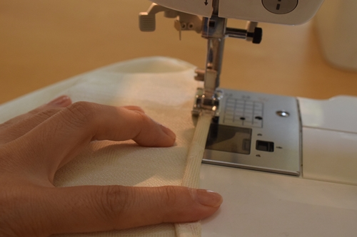 端を3つ折りにしてミシン。まっすぐ縫うだけなので簡単。