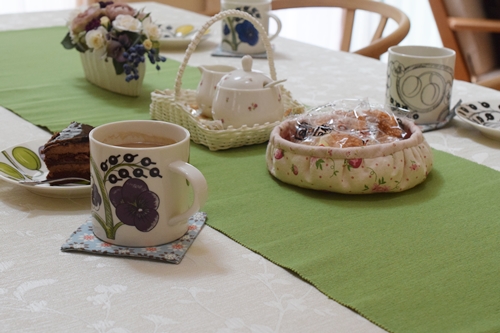 本当は、テーブルランナーってテーブルの端に垂らすようにするらしいのだけれど、こんな風に真ん中に置いてもいいみたい。
