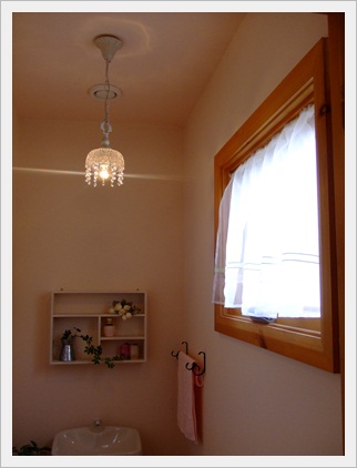 プチシャンデリアで「2階トイレを可愛く作戦」完了! 2011年09月01日 こんにちはーd(´▽`)b♪ さて、「2階トイレを可愛く作戦」も今日で無事完了です♪ ちょこちょこと自分で考えて作ったり飾ったして、とっても楽しかったです~♪♪ ▼今までの話はこちら。 2階トイレを可愛く。その1「配管を目隠し」2階トイレを可愛く。その2「ト