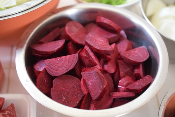 【ビーツを初収穫】ウクライナ料理「ボルシチ作り」に挑戦!!【色鮮やかで栄養豊富♬】 2022年12月14日 おはようございます♬先週、夫が山梨に帰省したときに、野菜を沢山またお土産に持って帰ってきてくれました♬ほうれん草、小松菜、ビーツはお義母さんが育ててくれたもの。キウイは親戚から、柚子はお隣さんからのいただきものです^^いつも有難いわ~今回、注目は「ビーツ」で