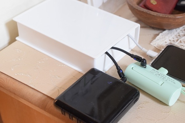 【スマホ・モバイルバッテリー・ワイヤレスイヤホン】大掃除のついでに充電ステーションのケーブルを見直し(・∀・)今の時代は「急速充電」ができた方がいい! 2023年11月07日 おはようございます♪大掃除チェックリストを作って大掃除をぼちぼち始めています( ̄ー ̄)今回は、リビング入り口キャビネットの大掃除をしました。▼上に載っているもの(ケーブルに繋がれているもの以外)をテーブルに移した写真。裏を掃除するためにキャビネットを動かし