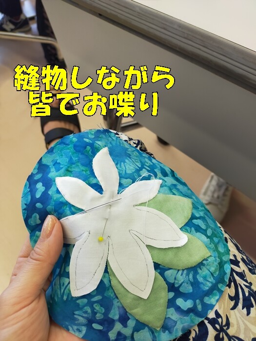 ハワイアンキルトのポーチ制作中(*・ω・)ノ&【母娘でシェア】ウエストゴムで着やすい♬リゾートワンピース 2025年07月26日 おはようございます♬昨日は「パッチワークサークル」の日でした^^私がこのサークルに参加したのは2010年なので、気づけばもう15年のお付き合いになります(・∀・)(メンバーはほぼ変化なし^^)▼初めて行ったときの話♬昨日、皆さんが持ってきていた作品がこちらです⇓♬それ