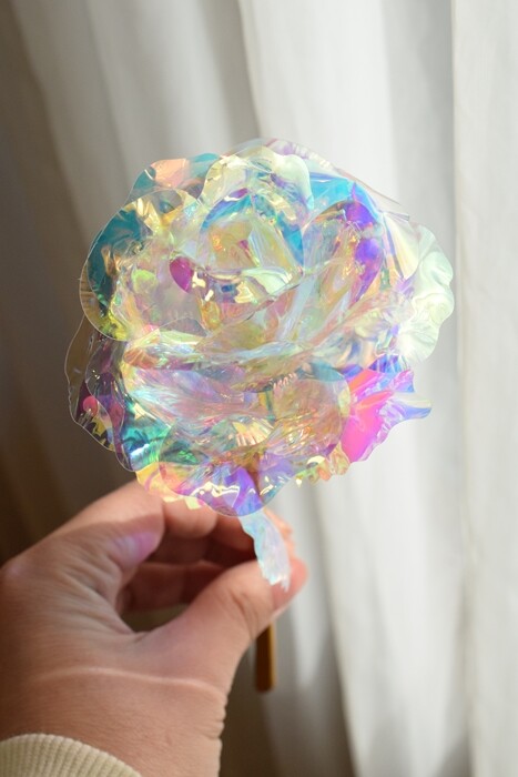 【セリア】SNSで話題のオーロラローズを買いました♪(税込み110円) 2021年11月09日 おはようございます(*・ω・)ノ先日、セリアでこちらの「オーロラローズ」(1本あたり税込み110円)を買いました。めちゃくちゃ綺麗でSNSで話題になっていたんですよ~💛セリアの雑貨コーナーに沢山置いてありました💛沢山入荷していたので3本買いました(*´∇`*)3本で330円。