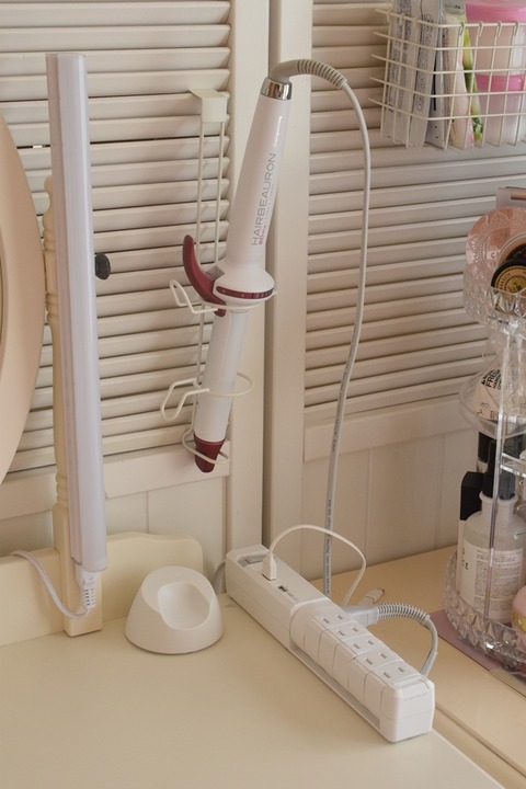 【Seria】ヘアアイロンホルダーが便利♪【100円】 2020年02月25日 おはようございます♪先日、Seriaでよいものを発見!今度から娘が愛用しているヘアビューロン(ヘアアイロン)をこんな風に収納することにしました(*´∇`*)↓ヘアビューロンを買ったときの話はこちら。↓綺麗な巻き髪が作れます。 今まではドレッサーの台の上に置きっぱな